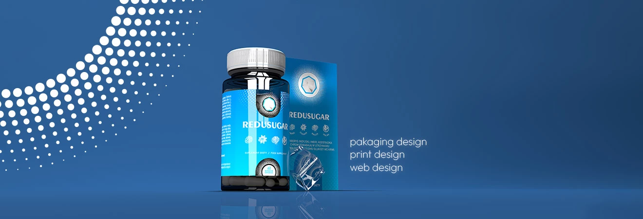 Projekty graficzne interfejsu strony sprzedażowej, projekt i model opakowania produktu.